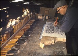 het krijten van de figuren op de schamel